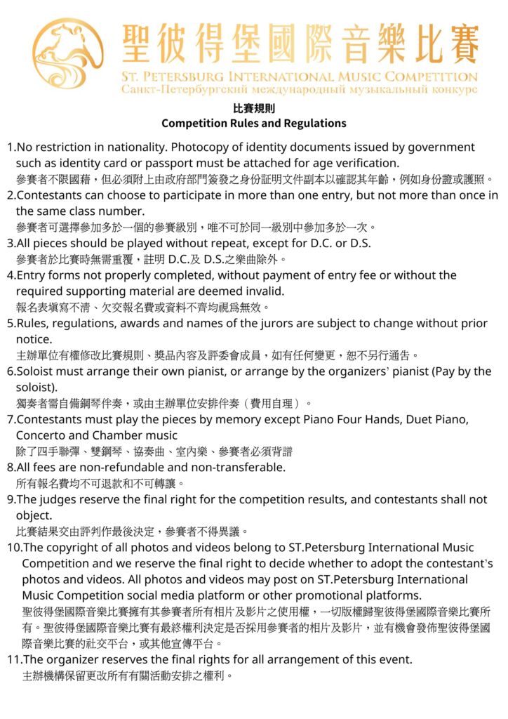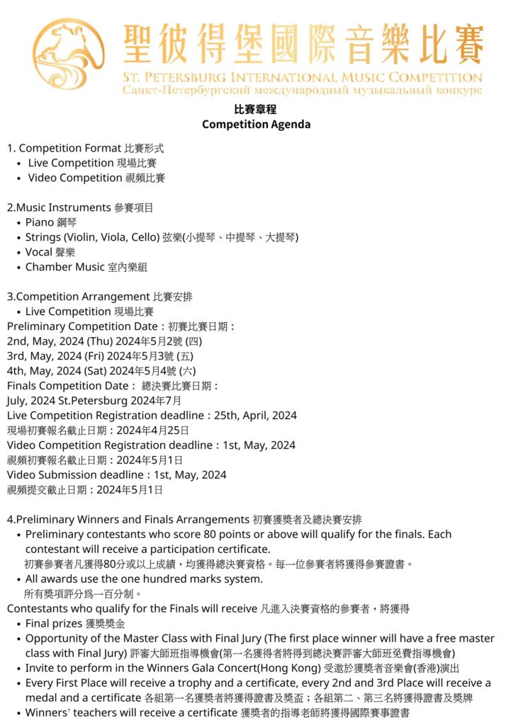 Vocal Professional Class Repertoire 組別及曲目